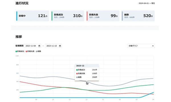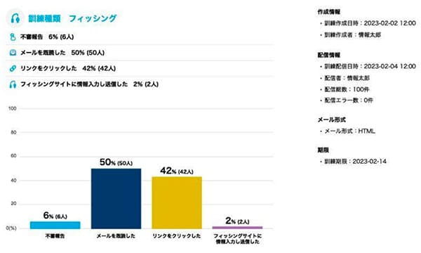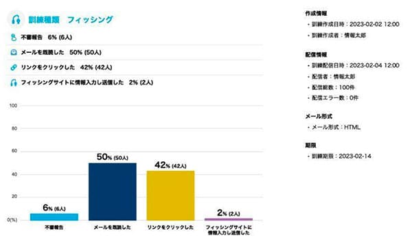 配信時の追加設定で、不審メールの報告数も合わせて確認できる