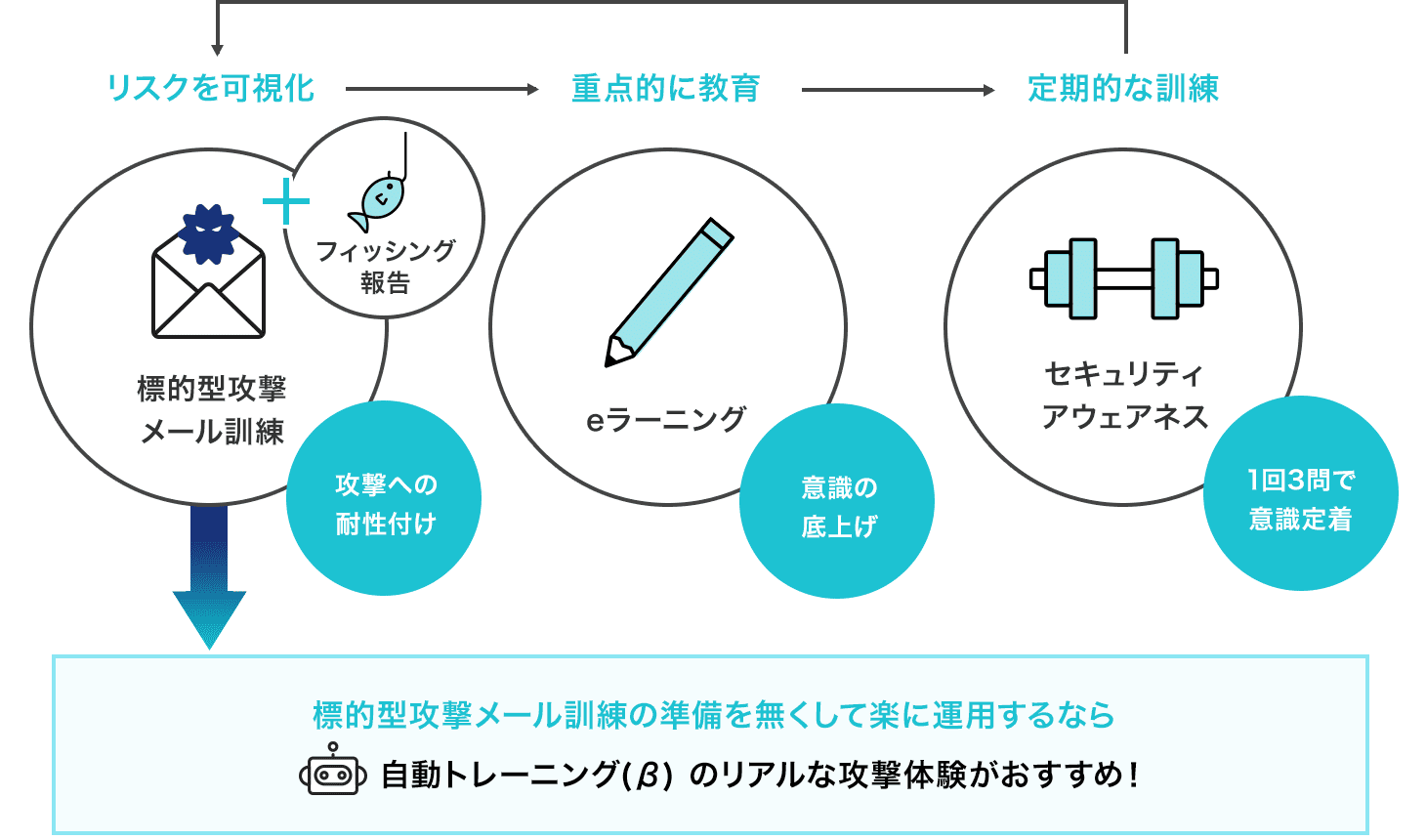 繰り返し受けることで従業員のセキュリティ知識が定着し、さらなる意識向上につながる